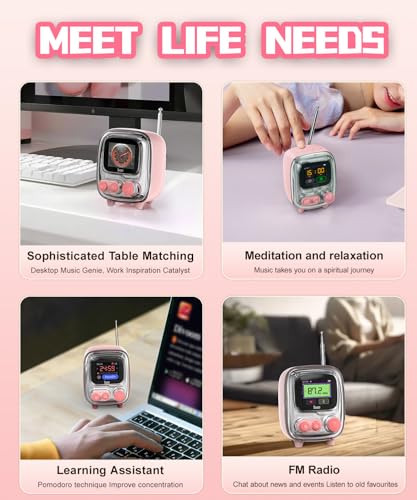 Bluetooth and FM : ATS automatically searches/stores up to hundreds of radio frequencies.16 core 40mm full frequency speaker +5W output power,5.3 Bluetooth connection,play your favorite music at any time, add color to life, happy mood.