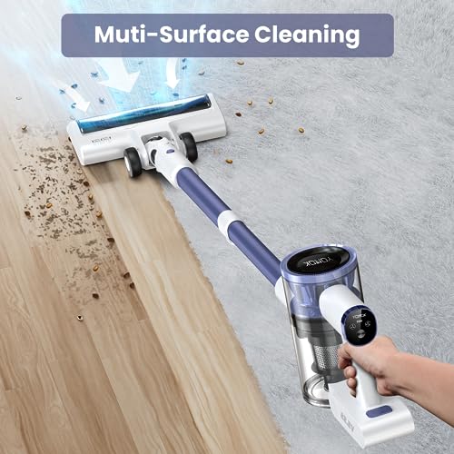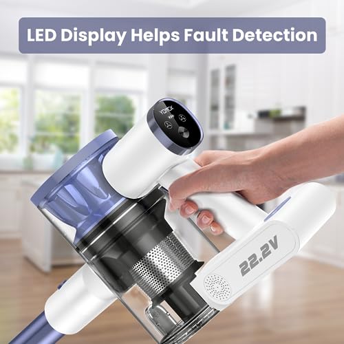 LED Display: Equipped with LED display, You can know the usage status of the cordless stick vacuum cleaner at a glance, making it easier to use and maintain the vacuum cleaner. stay updated in real-time about vacuum performance metrics including remaining battery, suction power, and blockage alerts.